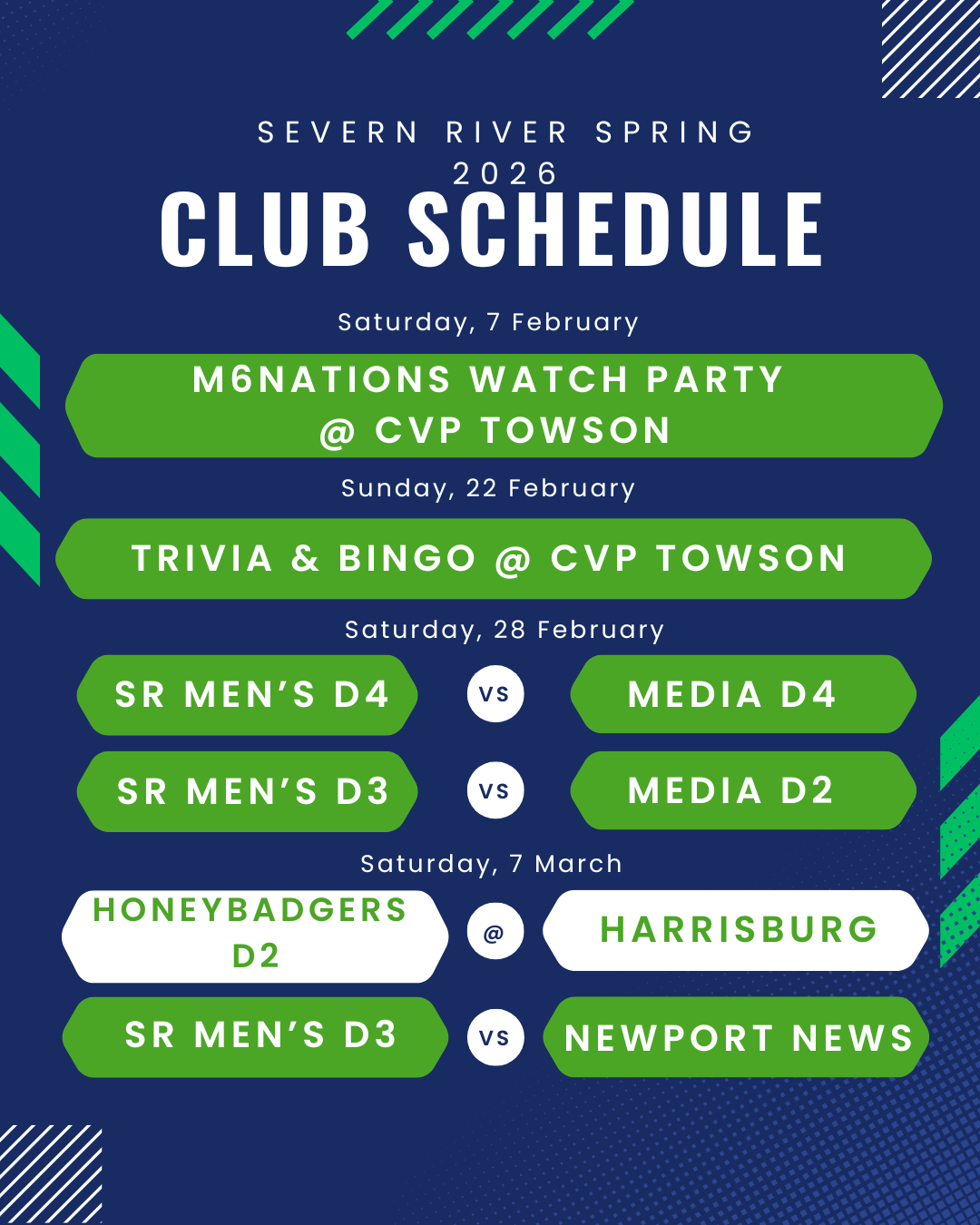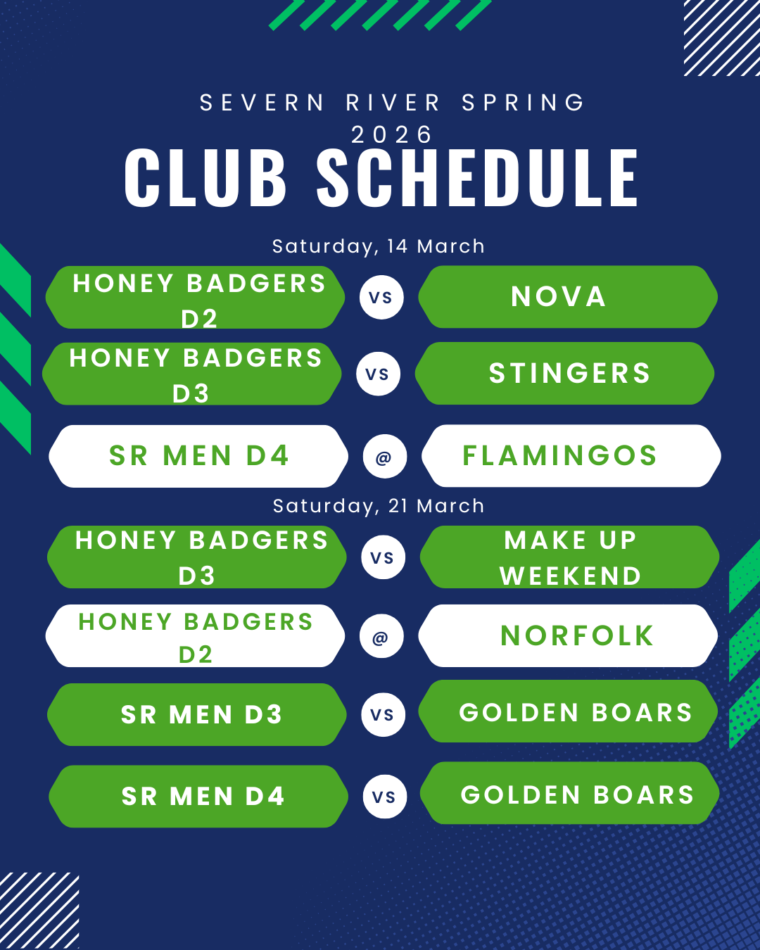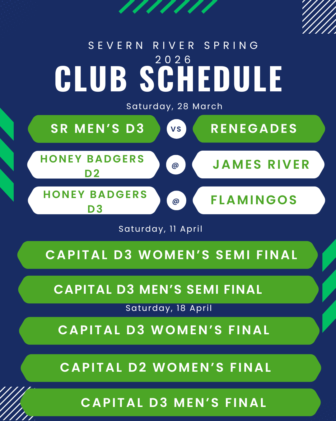 Honey Badgers D2 Schedule